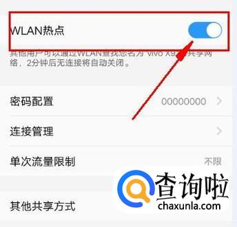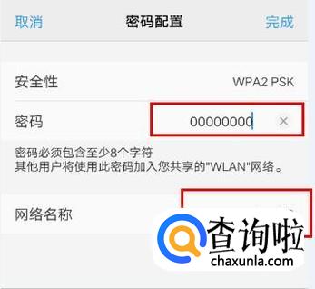 给你的热点设置一个密码,这里是“00000000”,网络名称为“vivo x9”