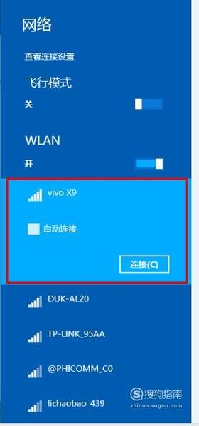 打开电脑,打开WiFi开关,查看网络,我们找到了名叫“vivo x9”的网络,点击。