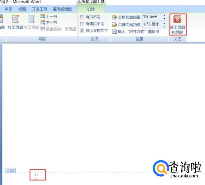然后我们输入1,然后点击关闭页眉和页脚,这样就设置好页眉和页脚了。
