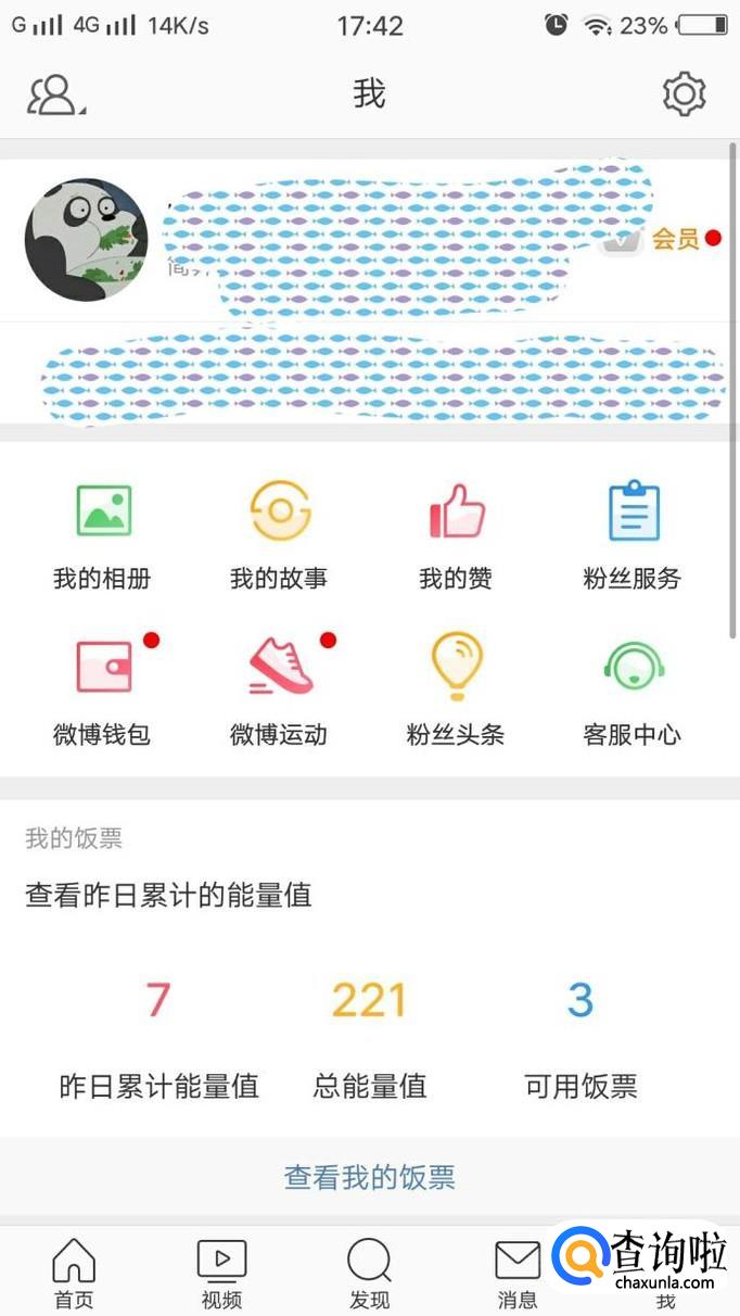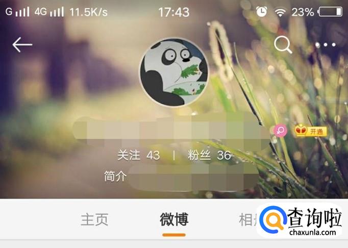 打开微博,进入界面后,点“我”。点击头像部分,进入主页。进行修改头像的操作。