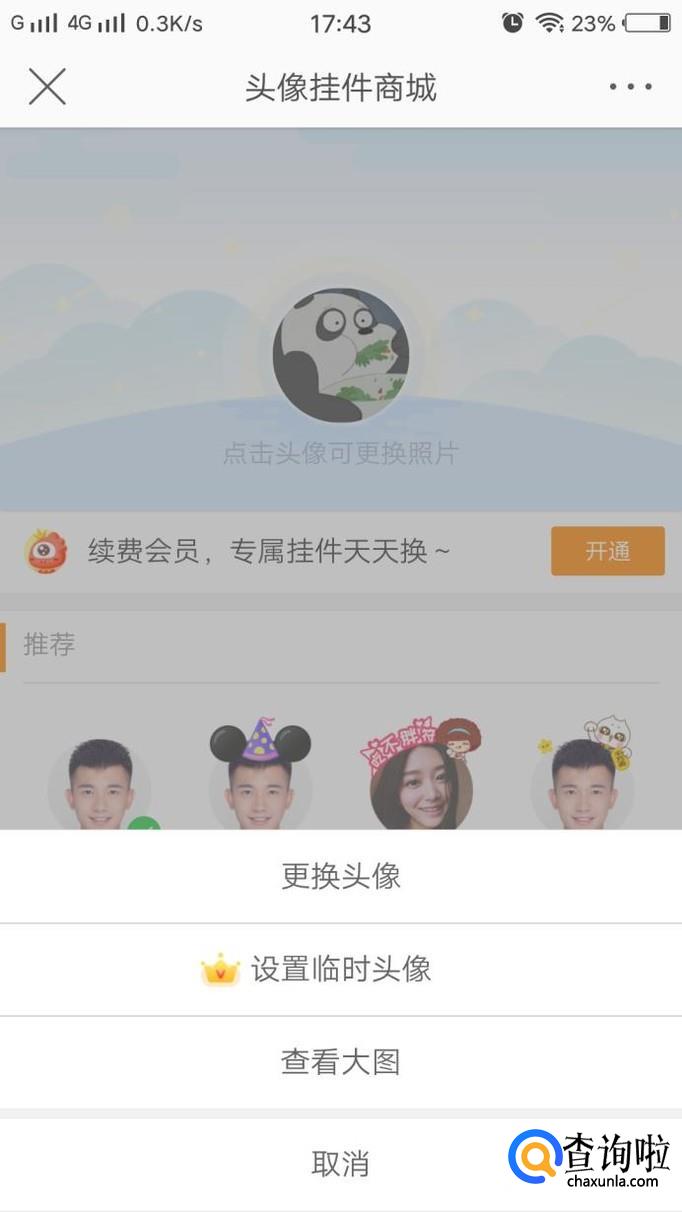 便会出现以下界面,有很多选项,点击“更换头像”,会跳转到自己的相册。