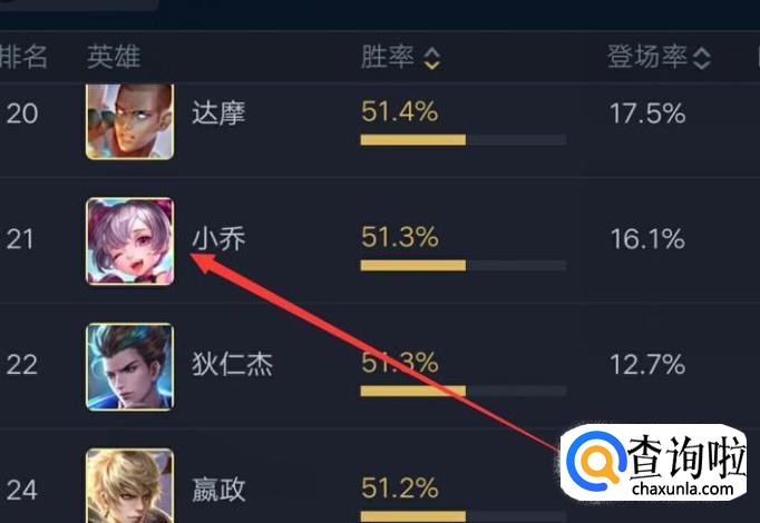 进入之后,点击“英雄榜单”,进入下一页面,如图所示。