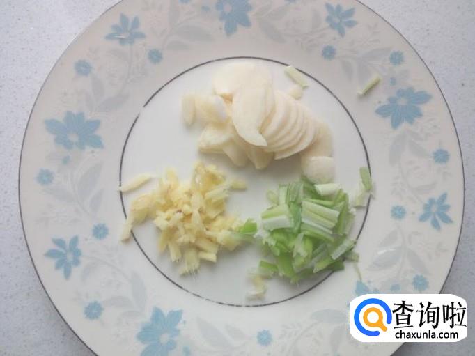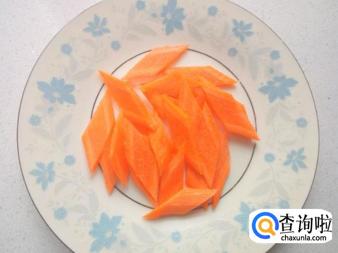 胡萝卜去皮,用水冲洗干净,控干水分,切成片。切好葱,姜,蒜,备用。
