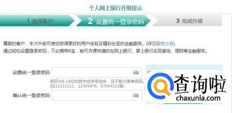 登入以后,我们就回看到最新的农行升级的界面了,我们首先选择升级的银行卡,然后跟着步骤来设置最新的登陆密码,然后就可以不携带k宝的情况下查询银行卡的业务。