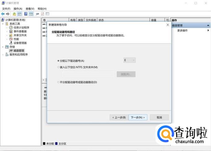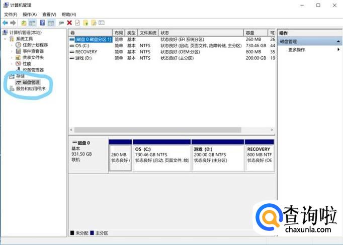 在“管理”选项的界面找到“磁盘管理”