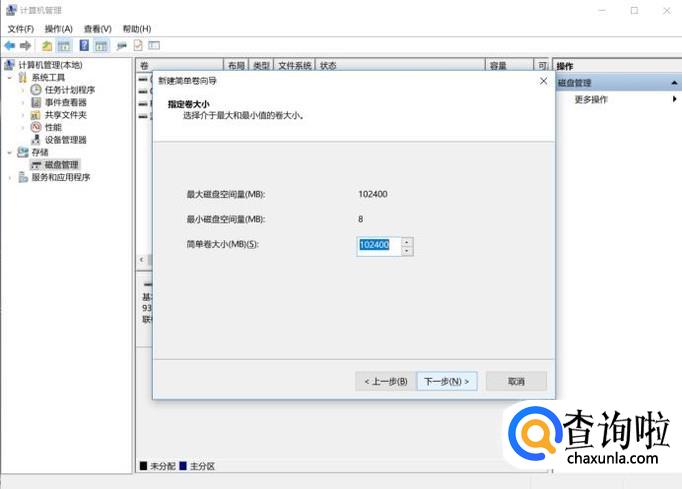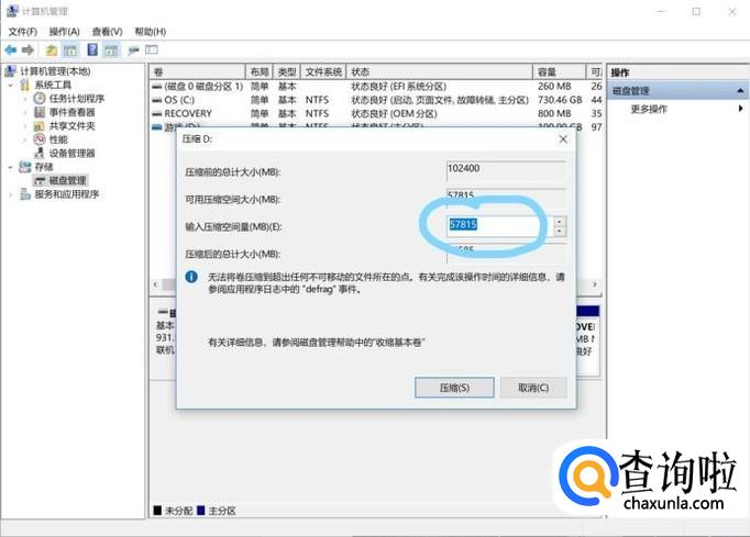 在跳出来的界面中,输入需要分割的空间大小,点击压缩