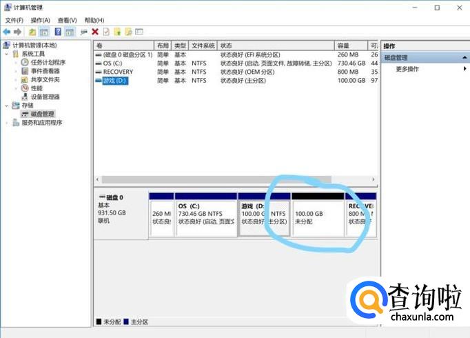 压缩完毕后可以看到多出来一个未分配的磁盘空间,这一部分就是新盘的空间了