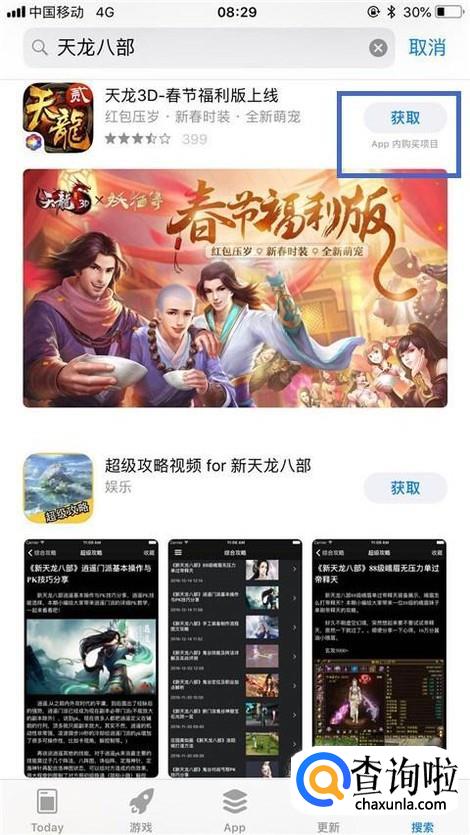 首先点击苹果商店中一个超过150M的应用右侧的获取,如下图所示。