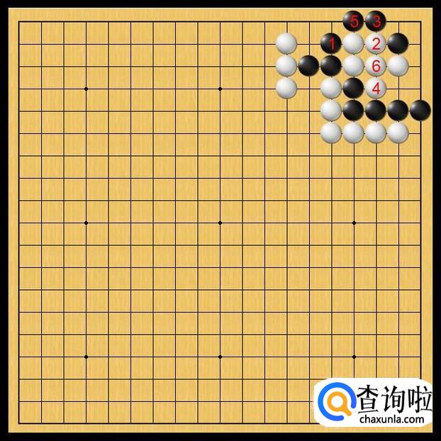 黑棋继续在底线黑5爬,黑5爬后,使得黑棋对内部白三子形成打吃。如图所示。
