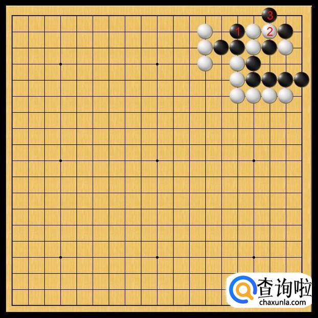 黑棋并没有理会白2的拐打,黑棋在黑3处落子,黑3的落子使得黑棋也在打吃白三子。如图所示。