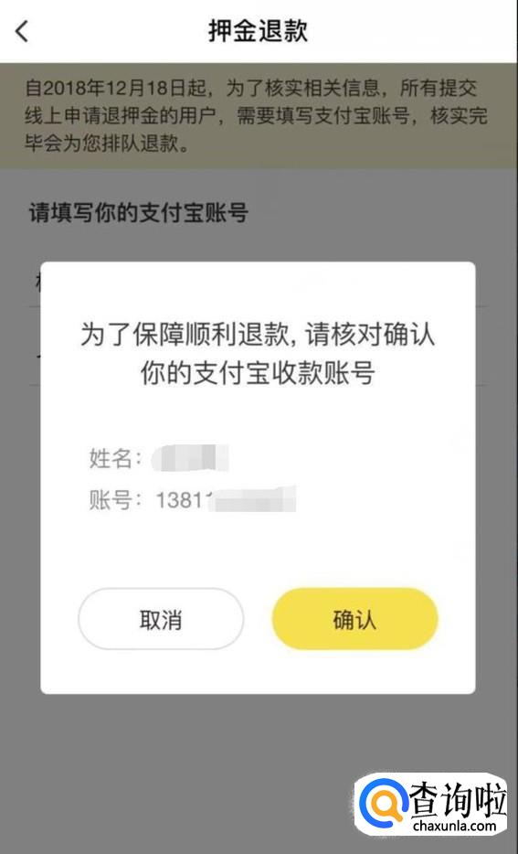 在APP端退押金,建议不要使用支付宝账号之外的方式进行退款,会取不出来。