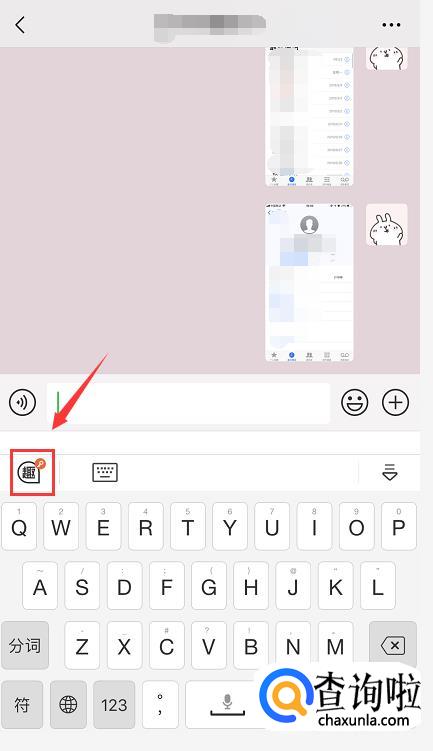 打开微信对话框,调出趣键盘,点击键盘左上角的趣图标。如果手机还没有安装趣键盘app的,请先前往应用市场或app store进行下载安装。