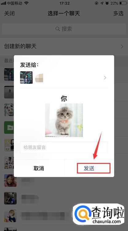 点击之后,系统会自动打开选择聊天界面,选择你想要谁接收到这个表情包。