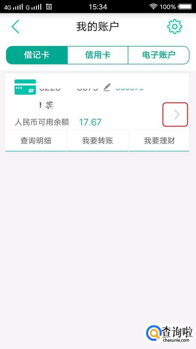 就可以看到个人名下的银行卡了,如图所示,点击余额旁边的“>”图标。