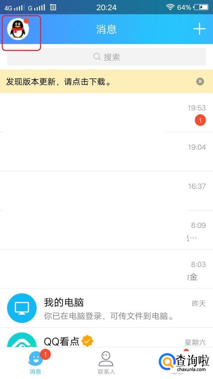 首先,我们打开手机QQ,进入界面后,点击左上角头像。