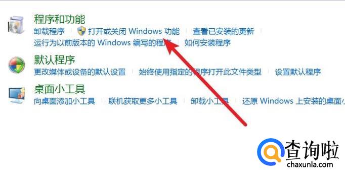 打开后,点击这里的‘打开或关闭Windows功能’。