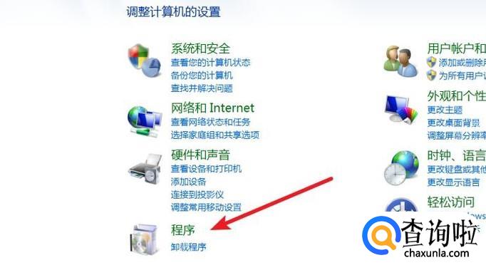 我们点击打开电脑的控制面板,点击‘程序’