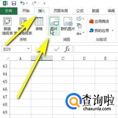 打开工作表,再点击“插入”选项卡,再点:图片