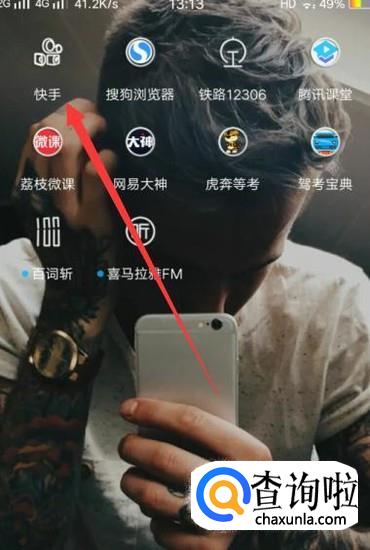打开手机,找到快手,点击并进入,如图所示。