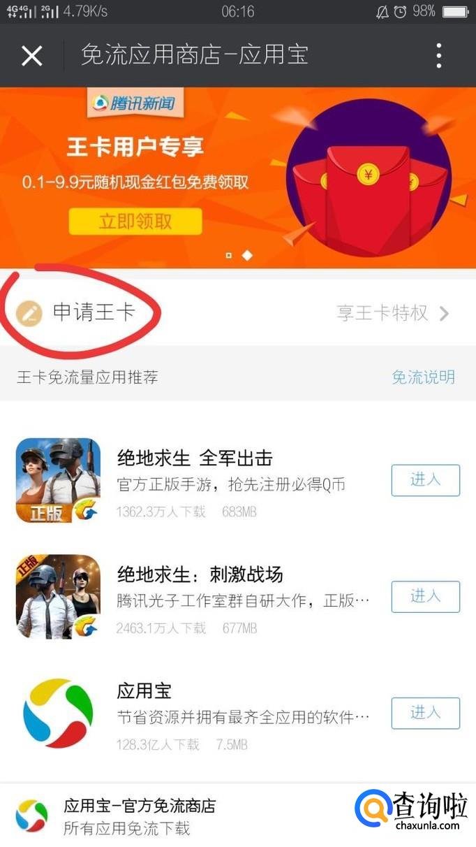 如果没有腾讯免流卡,我们可以在微信公众号王卡助手点击申请。
