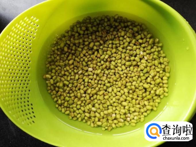 绿豆洗干净,浸泡4小时以上,也可以放在冷冻室冷冻一晚上,绿豆更容易煮开花