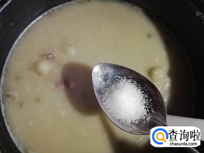 绿豆煮至软烂时,加点盐调味,利用余热让盐融化入味
