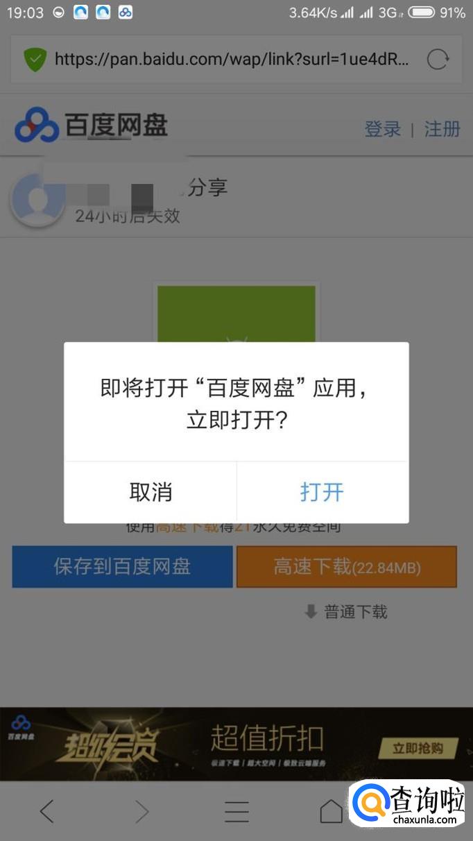 安装百度网盘APP之后,点击"高速下载"就会直接打开百度网盘并且创建下载任务,如果想要下载自己网盘里面的文件就直接在网盘里面点击这个文件,点击下载就好了。