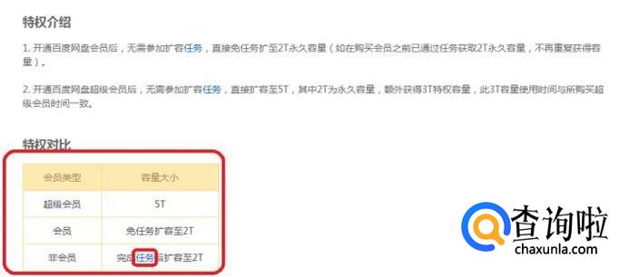 在该页面中可以看到,有三种扩容的方法,开通超级会员、开通会员和非会员完成任务扩容。