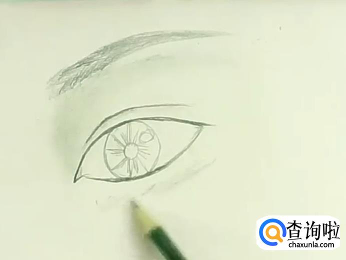 再就是加粗眼睛的线条,眼珠的部分画出中间的瞳孔,留出适当的空白,再画出发散的线条。