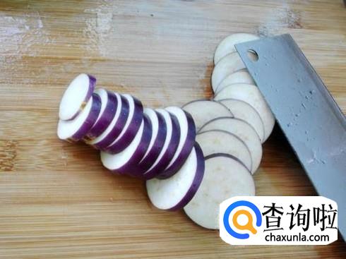把茄子去蒂洗净,用刀切成5毫米厚的薄片.