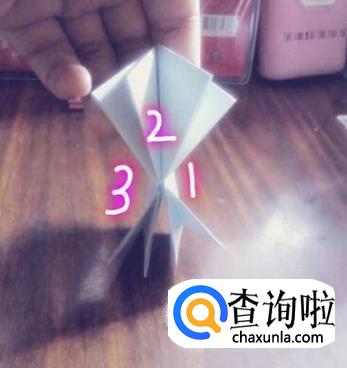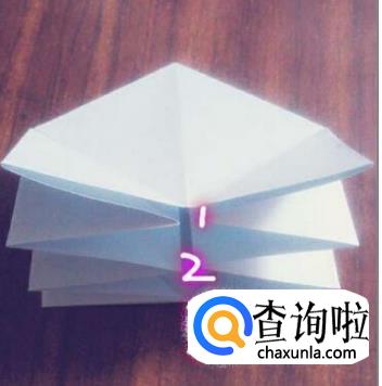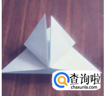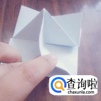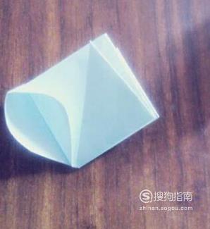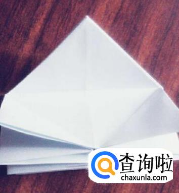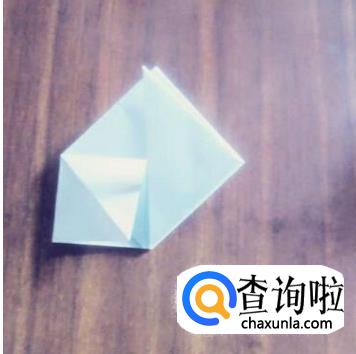 上面的三角形折下来,两面都折一下。这时,可以看到有三层纸