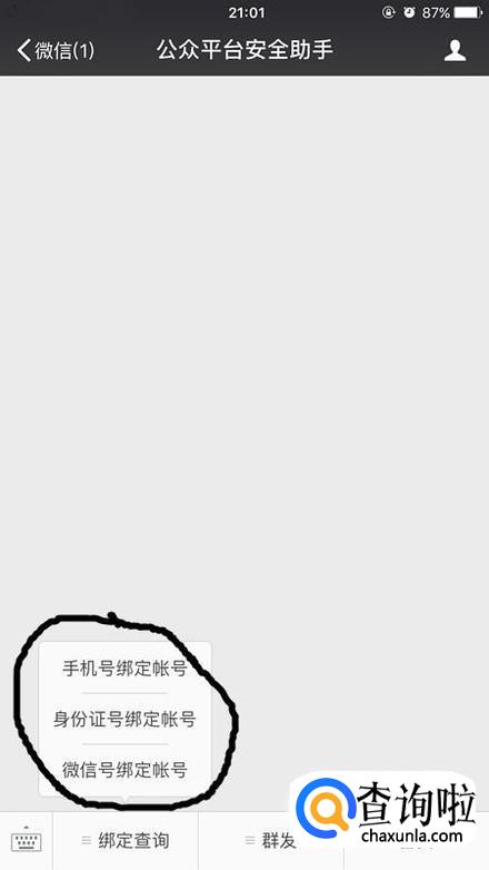 点击绑定查询。接着点击绑定查询,这时候就能对自己曾经绑定过的微信公众号进行查询了,如图所示,直接点击即可。