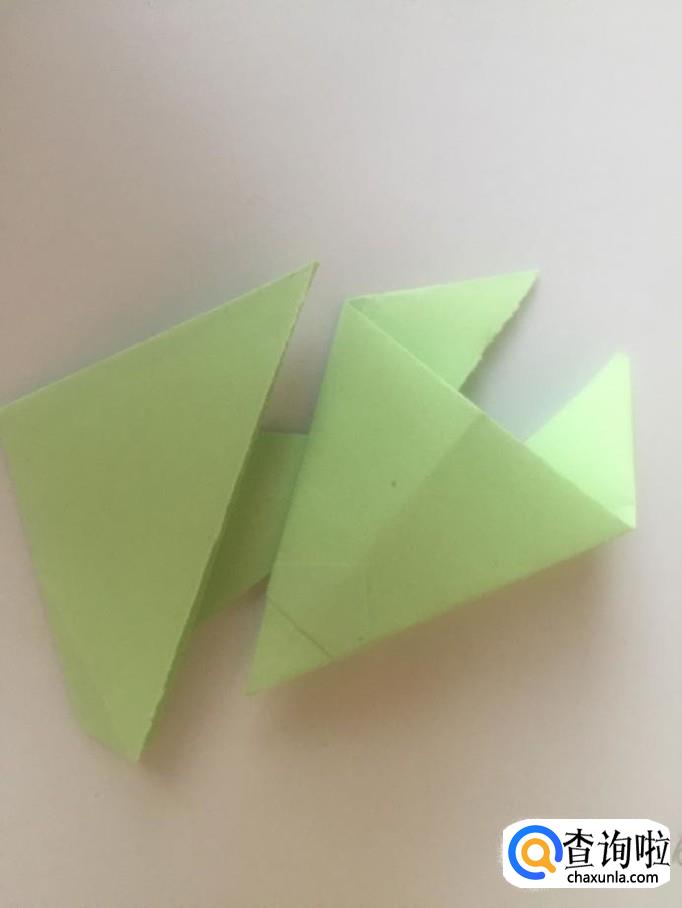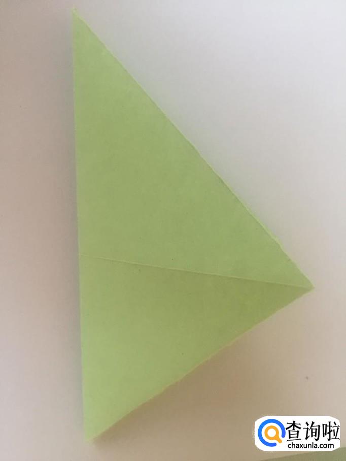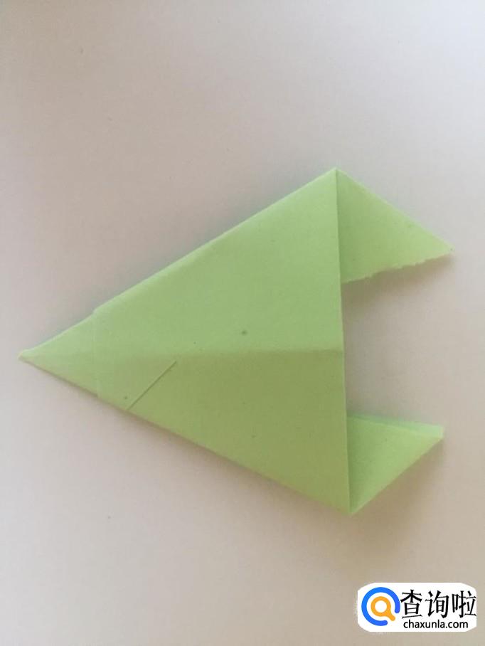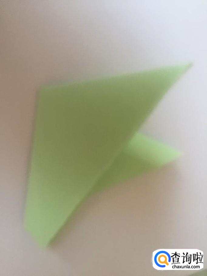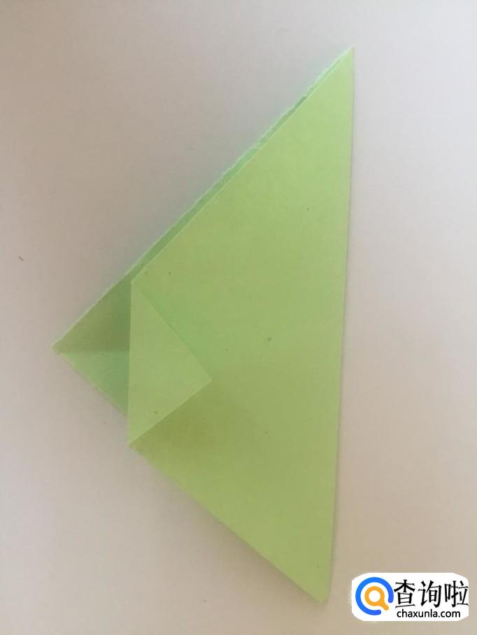 然后把折起来的上面的尖角向右侧折叠起来一个小三角形,如下图所示