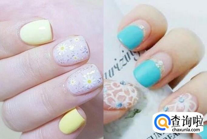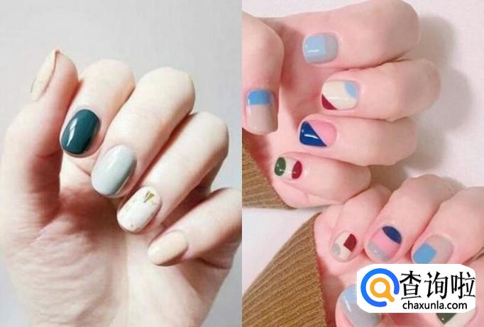 第一款,撞色系列美甲。颜色太单一,可能会显得普通没有什么特别的,但是利用简单的撞色原理,立刻就变得不一样了。可以让你的手显得白皙,更加亮眼