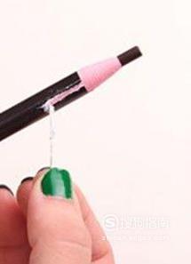 拿到眉笔之后,先不要着急用小刀去削,而是要先找一下白线,把白线拉出来。拉的时候千万不要太用力,因为扯断之后就不好了,所以稍微扯下来一点即可。