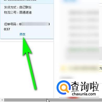 在快递单号下面有一个“修改”的按钮,鼠标点击:修改