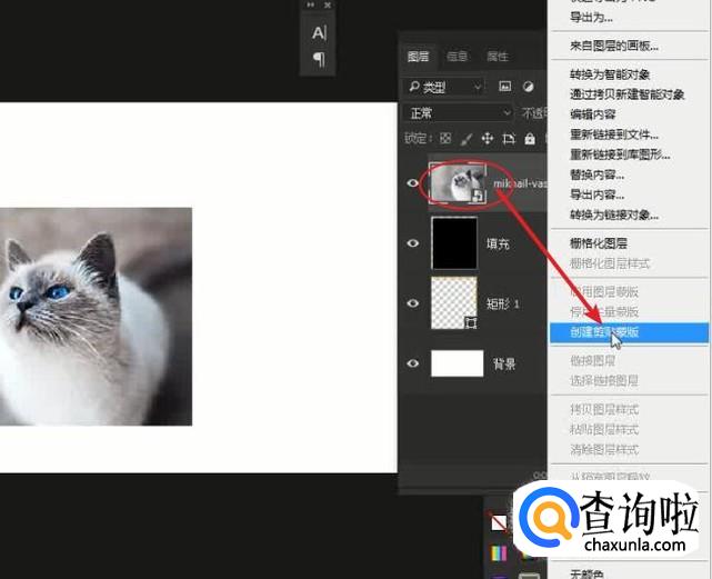 在新置入的图片图层上右击鼠标,选择创建剪贴蒙版。