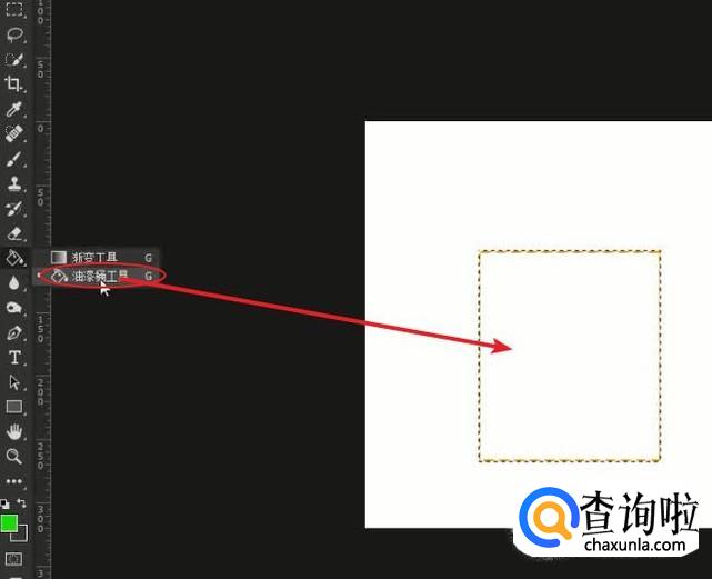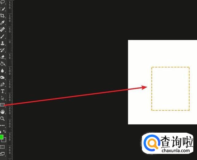 使用矩形选框工具,在画布上虚线边框内部绘制选区。