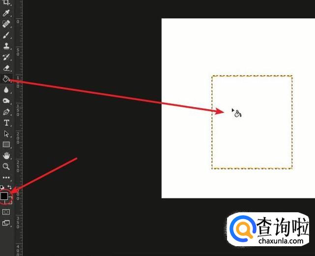 通过油漆桶工具,将前景颜色设为:黑色,填充选区。