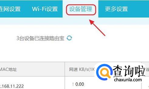 此外,还有可能就是WiFi密码被他人破解然后蹭网了,如何判断是否被蹭网了呢?依旧是在路由器网站,我们点击“设备管理”或者相关选项,如下图;