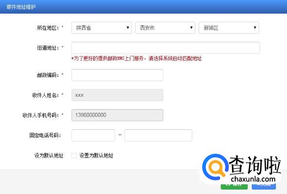 如果选择邮政寄递的方式,用户需认真填写驾驶证邮寄地址等相关信息。用户可以设置默认地址,删除地址,并且使用新地址。点击【使用新地址】,可以新增邮寄地址。