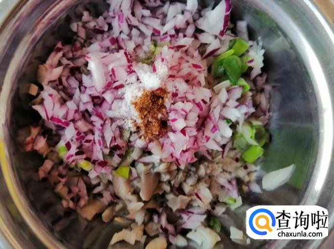 取适量新鲜的大葱,用清水把葱洗净,然后把从切末,最好是青葱,炒出来颜色比较好看,把切好的葱末放入蘑菇中,加入切好的圆葱末。