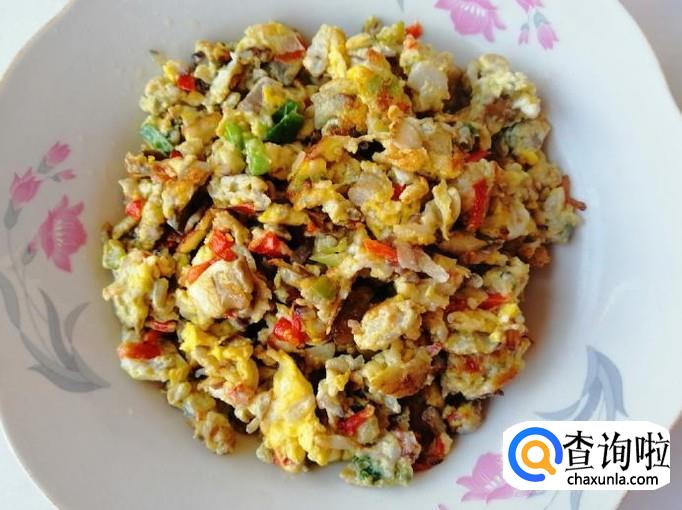 适量蘑菇,适量红彩椒,适量圆葱,适量香葱,两个鸡蛋,适量食盐和五香粉