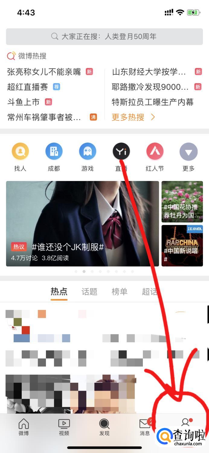 打开微博,点击右下角的我进入进行修改。