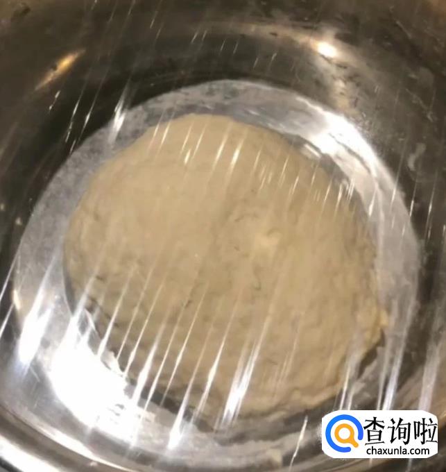 然后我们倒入270g温水,搅拌均匀,揉成面团,盖上保鲜膜醒发3个小时,