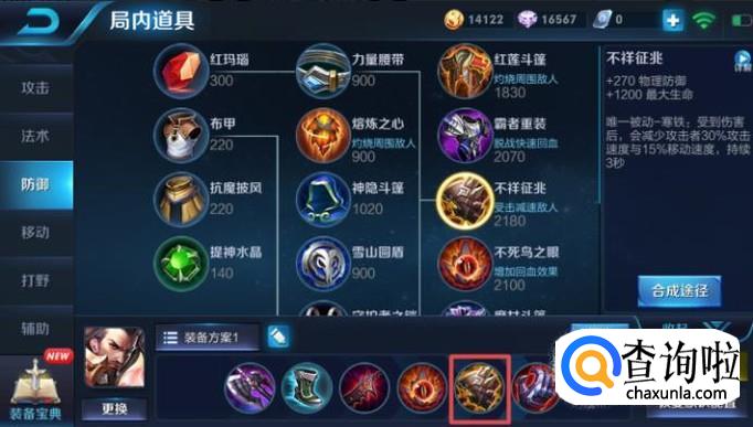 然后我们该出不祥征兆了,该装备可以提供270的物理防御,此时对方的射手攻击力肯定是非常强势的,我们需要增加一定的物理防御,从而靠近对方射手进行攻击。
