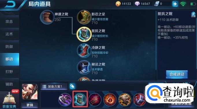 之后我们应该出抵抗之靴,该装备可以加快曹操的移动速度,这样抓脆皮的能力就会更强势一些,配合吸血大招,基本上是很难死掉的。基本上出了该装备之后我们就可以去中路抓法师了。
