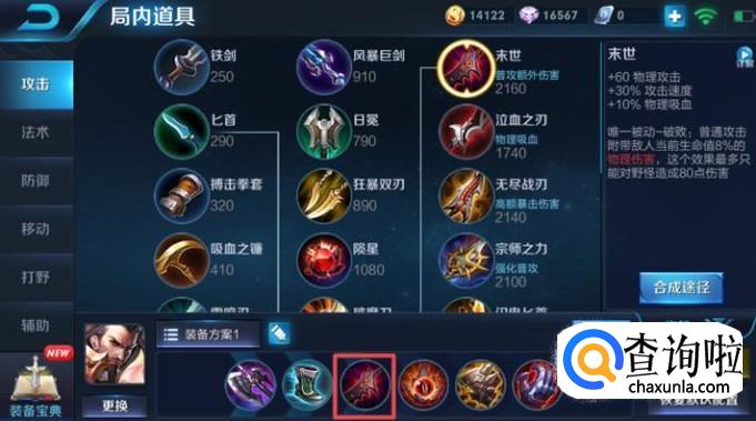 之后我们就该出末世了,这个装备是提供10%的物理吸血的,所以我们在抓脆皮英雄的时候,尽可能的贴近对方的英雄进行平A,这样我们是可以间接的吸血的。
