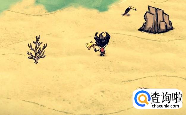 收集完建造一本科技的材料之后,就可以收集制造铲子的材料了,主要是小树枝和碎石。