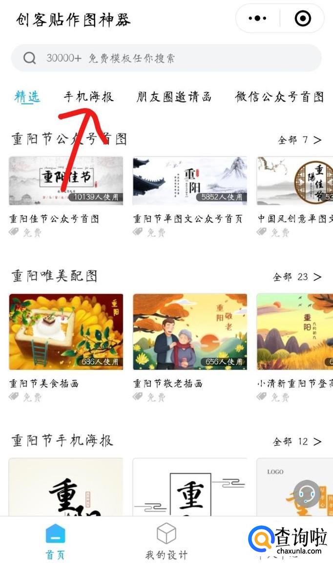 然后选择手机海报部分,并挑选自己喜欢的模板